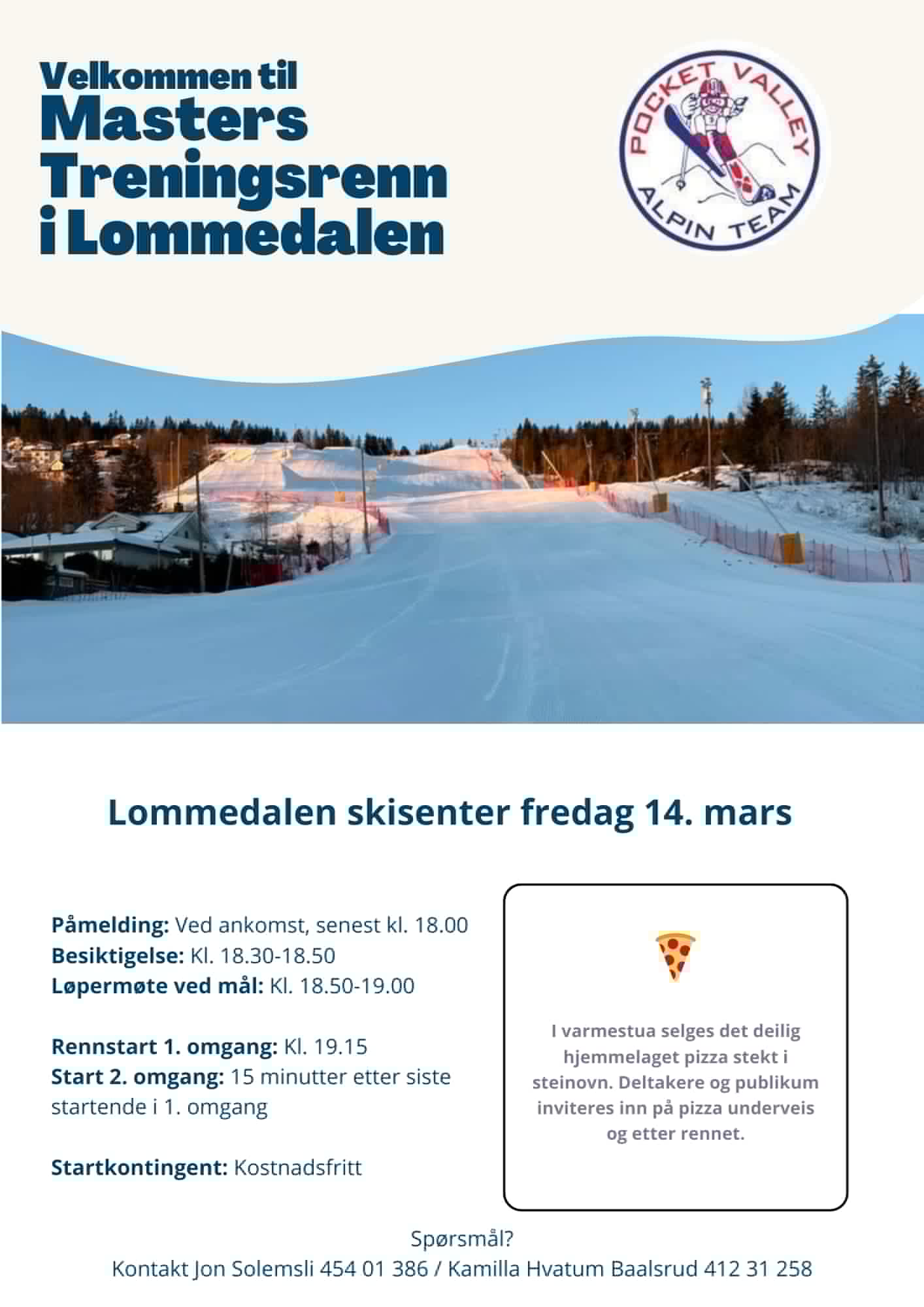 Masters Treningsrenn i Lommedalen - Fredag 14. Mars, kl 18