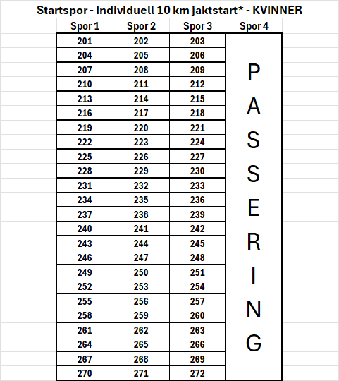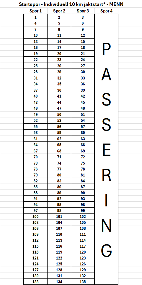 - I oversikten under ser utøverene hvilket startspor de skal starte i.