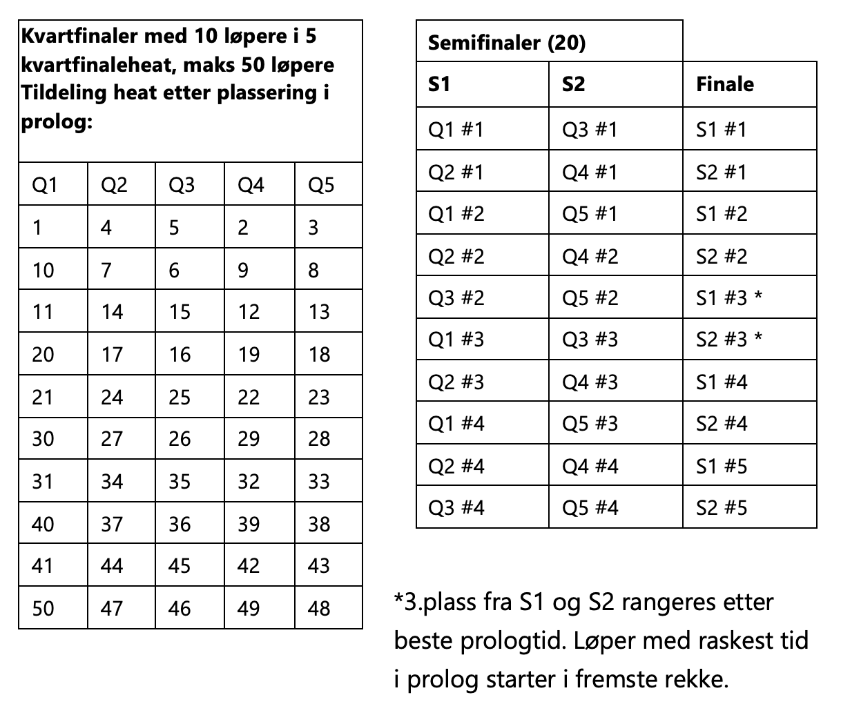 - Kun tidtaking i prolog – ingen lucky looser i heatene