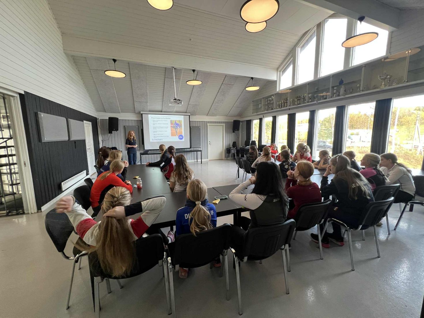 Foredrag; Hedda Hajum Olsen, nyutdannet fysioterapeut og behandler for DHK kom og snakket om skader og skadeproblematikk for jenter i ungdomsskolealder. Det ble både teori og praktisk gjennomføring.