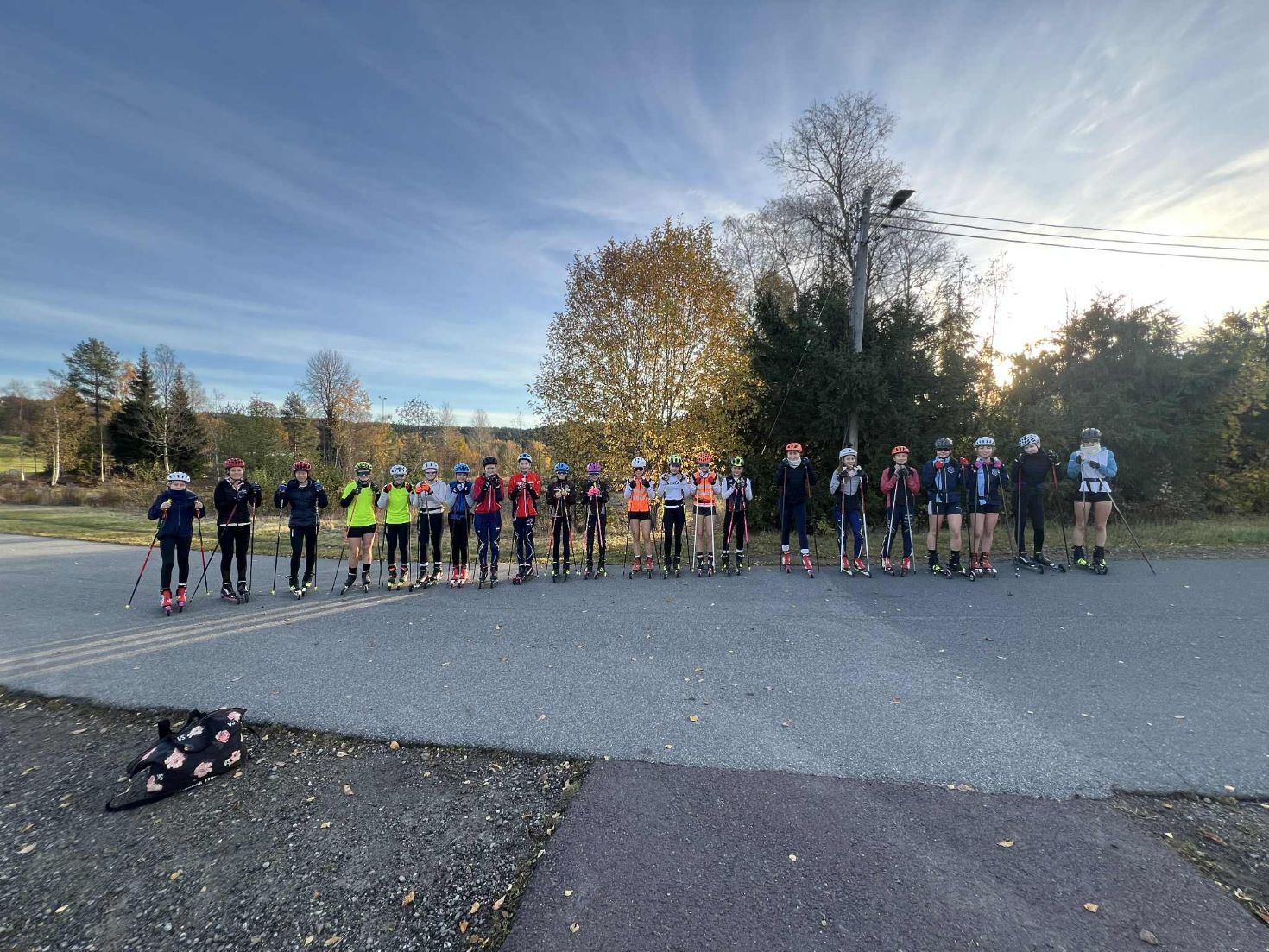 22 spente jenter i 2010-2012 årgangene både fra Buskerud- og Akershus Skikrets var samlet på Konnerud i nydelig høstvær 12. oktober til samling i Jenteprosjektet langrenn.