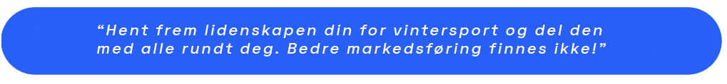 Skisport er ikke mindre populært nå enn før. 1,3 millioner nordmenn oppgir at ski er deres viktigste mosjonsform. Utfordringen vår er at deler av imaget til skisporten kan oppleves utdatert for noen. Derfor er det så viktig at alle legger fullt trøkk på markedsføringa kommende sesong, slik at flere skjønner at organisert skisport er utrolig mangfoldig.