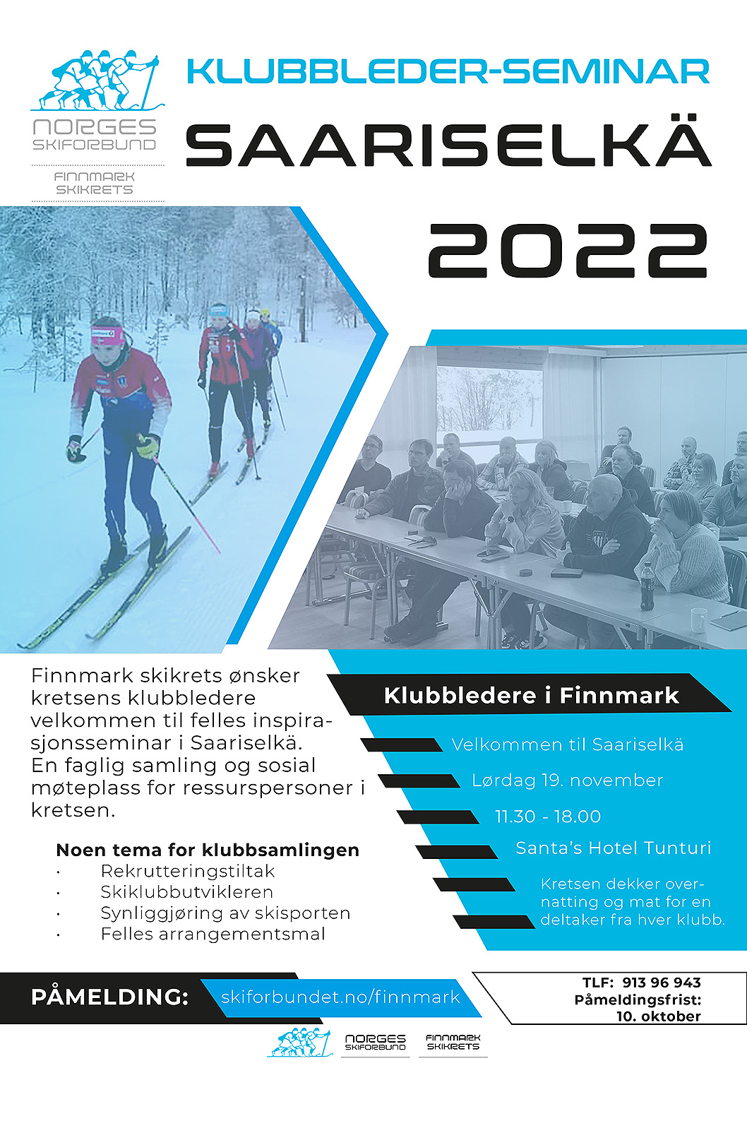 Finnmark skikrets inviterer til klubblederseminar i Saariselkä lørdag 19. november. Kretsen dekker deltakelsen til én person per skiklubb.