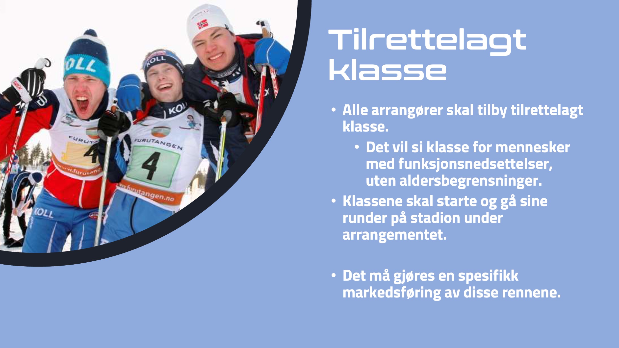 Det skal være ære urangerte resultatlister til og med 12 år. Dette er nytt for kommende sesong, siden det tidligere bare var opp til 10 år. Det skal være doble klasser fra 13 år og eldre. 13-14 år , 15-16 år , 17-18 år , 19-20 år og senior.