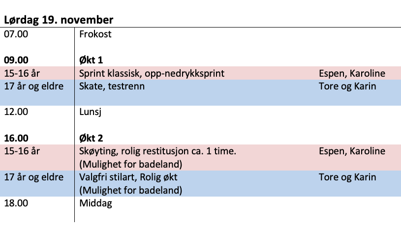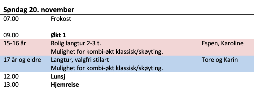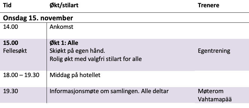 Det planlegges også ei miljøsamling for utøvere under 15 år fra fredag til søndag, men denne administreres av skiklubbene selv og koordineres av Kirkenes og Omegn Skiklubb. Kontakt Hilde Michelsen i KOS for spørsmål om planene for denne samlinga.