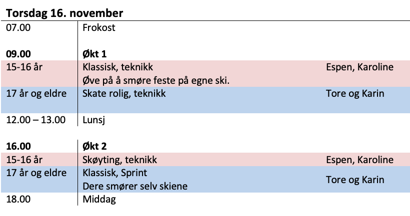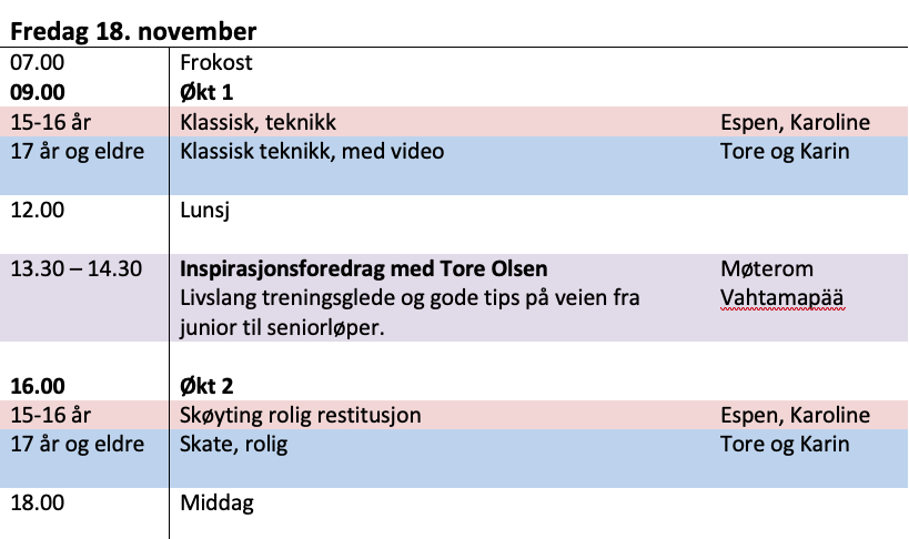 Torsdag vil det bli foredrag med tidligere Norgesmester på ski, Tore Olsen fra Alta IF. Gled dere til å høre triksene Tore har tatt med seg fra juniorårene og frem til voksen alder. Hvordan han Tore tatt vare på og utviklete en livslang treningsglede.