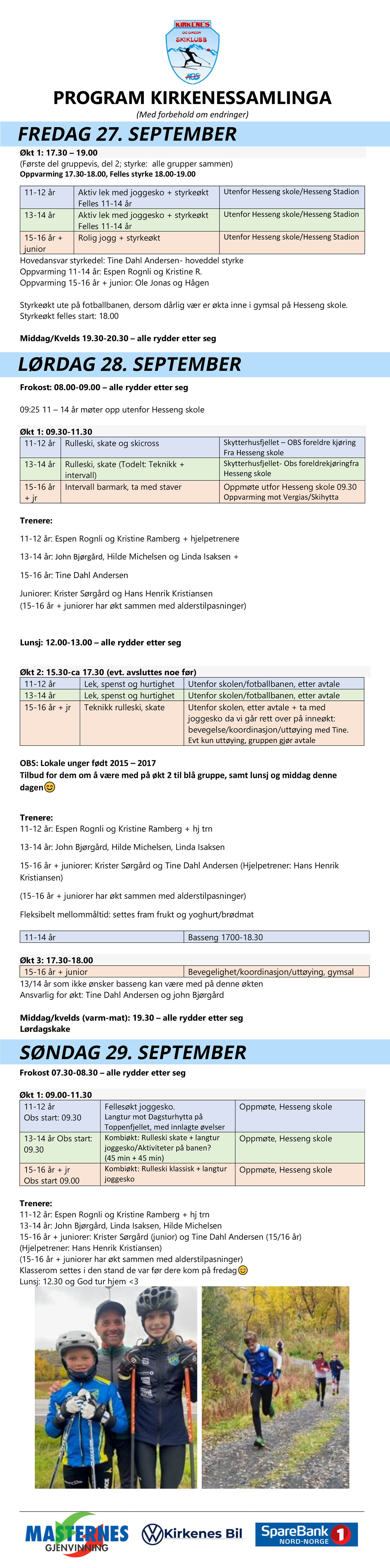 Kirkenes og omegn skiklubb har i samarbeid med Finnmark skikrets gleden av å invitere alle utøvere fra 11 år til og med junior til treningssamling. Ekstra gledelig er det at tidligere landslagsløper og landslagstrener Krister Sørgård kommer for å bidra i trenerteamet.