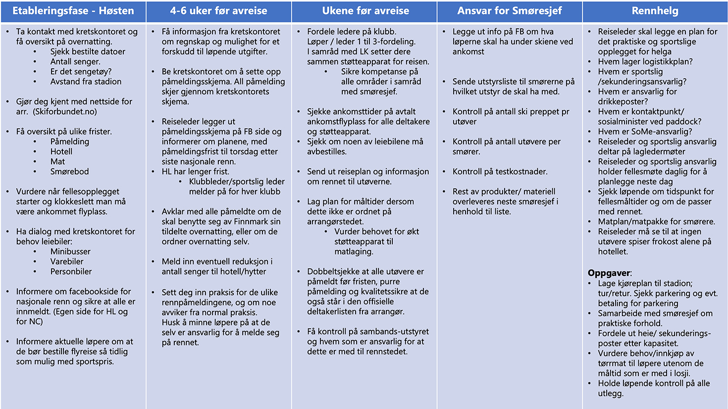 Langrennskomiteen setter opp reiseledere, smøreteam og øvrig støtteapprat for de fire jr. norgescuphelgene og til Hovedlandsrennet. Støtteapparatet blir fordelt på klubbene basert på hvor mange deltakere klubben har på de respektive rennene. Finnmark skikrets bruker å følge regelen om 1 forelder per 3 utøvere. Mer om sted og tidspunkt for de ulike Norgescup-helgene og HL finner du på denne siden.