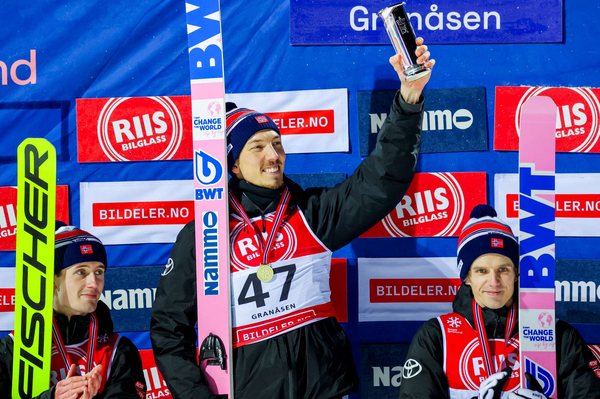 Tromsø SK-hopperen gikk til topps etter en intens duell med Kristoffer Eriksen Sundal. Til slutt skilte 1,6 poeng mellom de to. Sundal hadde ledet med 0,2 poeng etter 1. omgang i VM-anlegget i Granåsen. Halvor Egner Granerud knep tredjeplassen.
