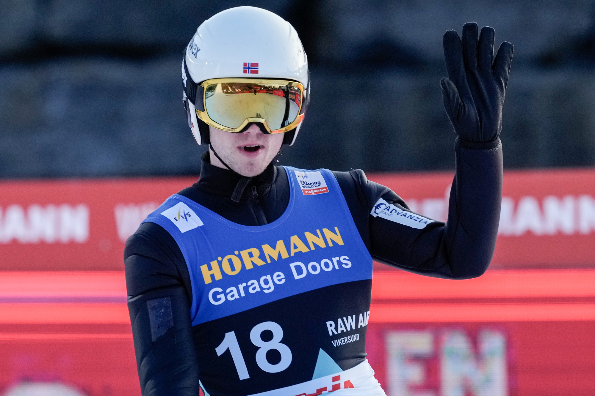 Sølve Jokerud Strand tok sine første World Cup-poeng i Vikersund. Foto: Terje Bendiksby / NTB.