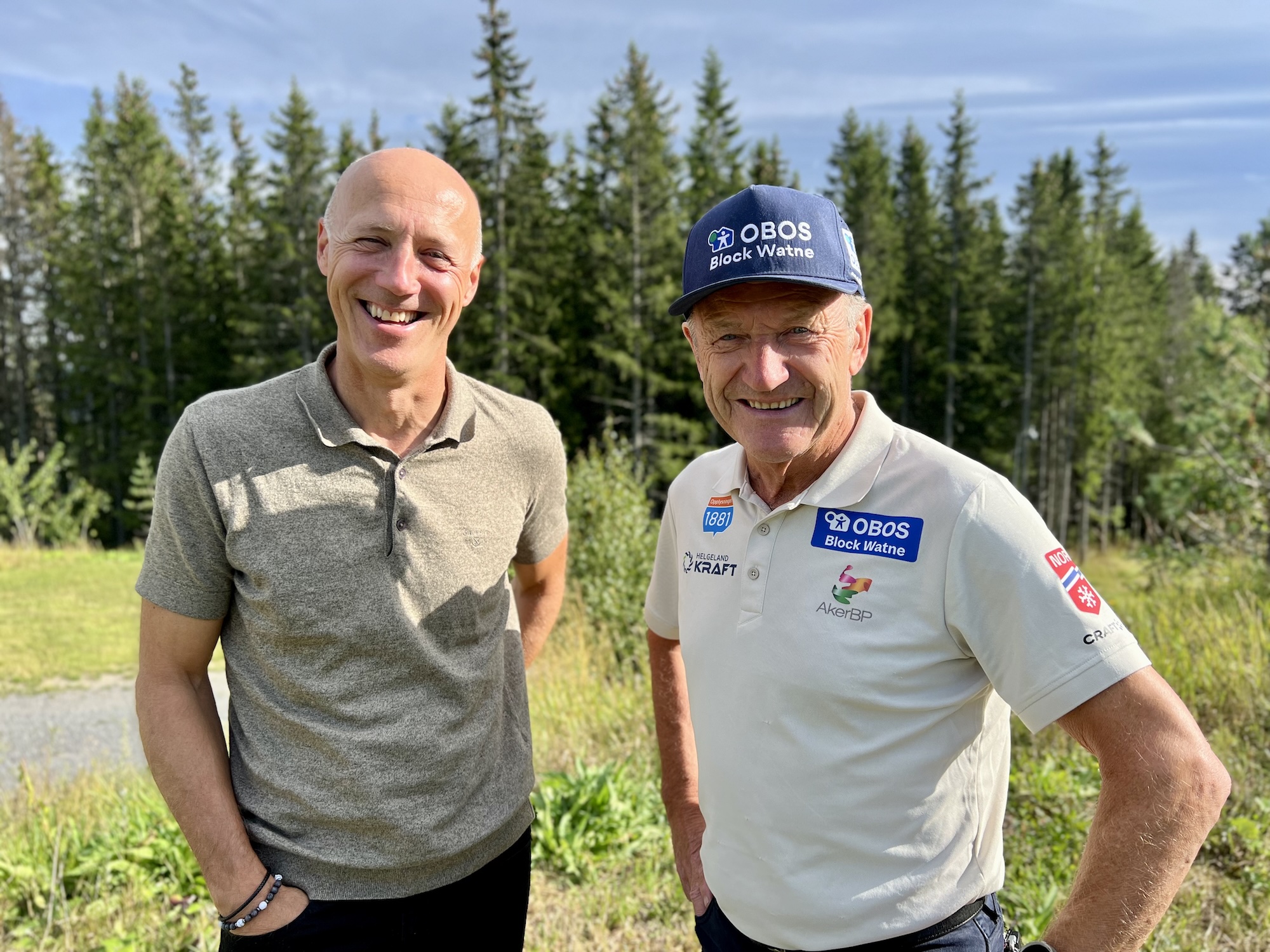 Lasse Ottesen og Ivar Stuan gleder seg til å se verdens beste kombinertutøvere sette utfor i skiflygingsbakken i Kulm (Foto: Steinar Bjerkmann / NSF)