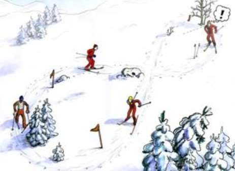 - forfølgelsesritt (mange i løypa, viktig med bredt spor)