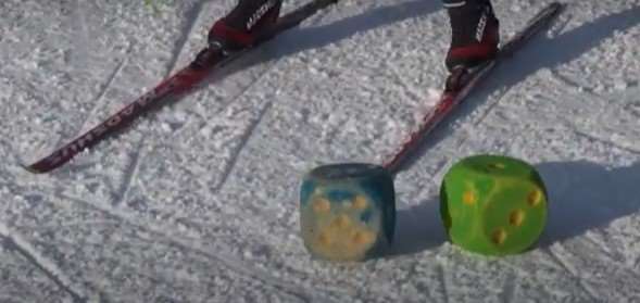 Terningstafett: TERNINGER+TENNISBALLER a. Ski og barmark: 2 eller flere pr lag: ett kast, terningkast 6 gir en tennisball, ta med tennisball tilbake til veksling, aktiviteten er ferdig når det ikke er flere tennisballer igjen. b. Gjennomføres i forskjellig terreng, legg terningene på enden av ei flate, bakketopp, bakkebunn osv.