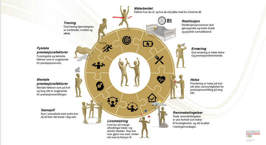Ingvild Riise Midtun, fagkonsulent toppidrett ved Olympiatoppen innlandet er en av fagpersonene bak «UTVIKLINGSHJULET», som er et teoretisk verktøy til praktisk bruk som skal gjøre det lettere for morgendagens utøvere og deres trenere å sikre prestasjonsutvikling over tid. Utviklingshjulet er blant annet et godt utgangspunkt for trener-utøversamtaler. Enkelt sagt kan verktøyet sammenlignes med en arbeidskravsanalyse som omfatter prestasjonsfaktorer som av betydning for prestasjonen, også utover det rent fysiske. Eksempler på slike faktorer er søvn, rammebetingelser og samspill. For at «hjulet» skal rulle rundt må alle enkeltfaktorene være «godt nok» på plass. «Gjør det VIKTIGSTE RIKTIG FØRST» er et mantra for bruken av Utviklingshjulet. Av og til er det viktig å stoppe opp, gå bort fra detaljfokuset og zoome ut slik at man i større grad klarer å ivareta helhetsperspektivet.
