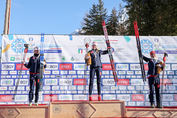 Herrepallen: Fv. Lars Heggen, Filip Skari og Isai Naeff (Newspower.it) Kvinnepallen: Fv. Iselin Bjervig Drivenes, Malin Hoelsveen, Milla Grosberghaugen Andreassen (Newspower.it)