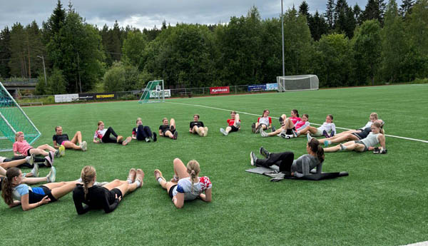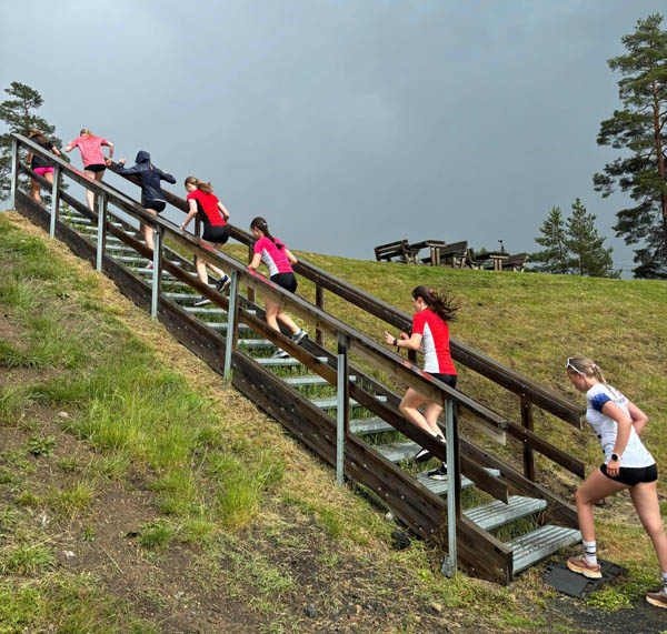 Solveig Hernadez Vråle hadde andre økt med spenst og styrke hvor jentene fikk bryne seg på trappespenst og høyinsitetstrening.