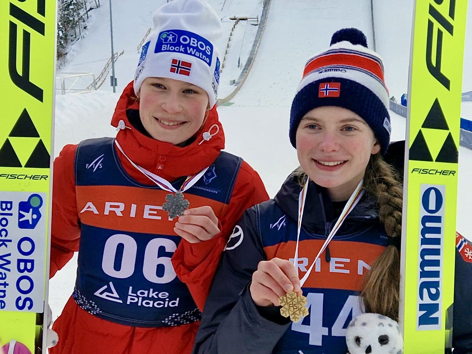Suksess i junior-VM: Ingvild Synnøve Midtskogen tok gull i hopp, mens Ingrid Låte tok sølv i hopp og gull i kombinert. (Foto: Carlo Brömel / NSF)