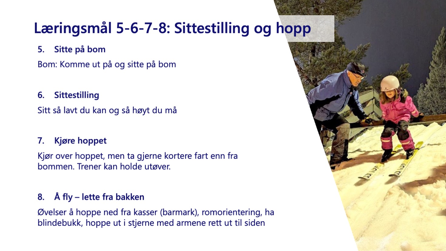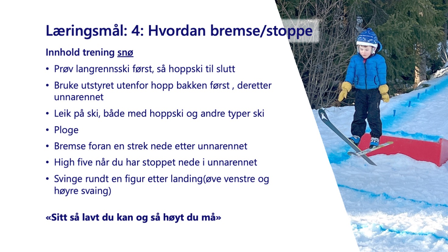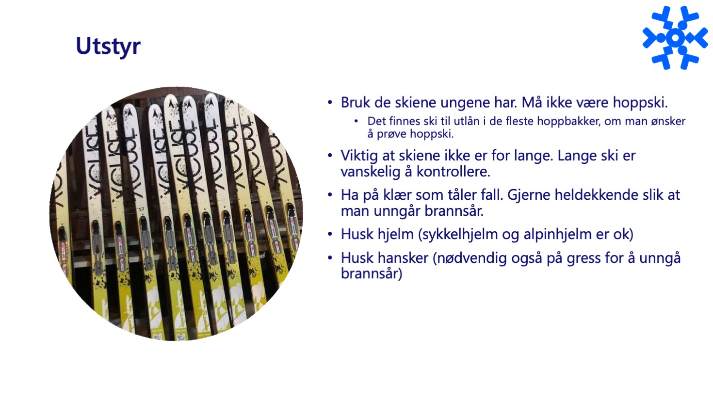 - Ha kunnskap om skiutstyr for barn.