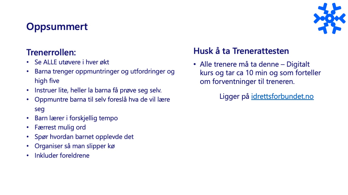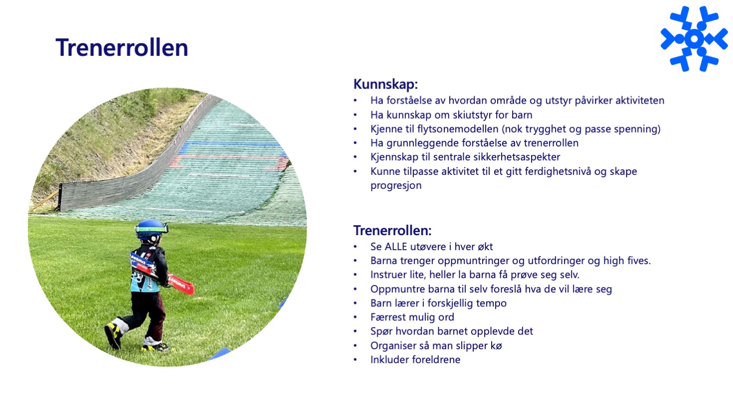 - Kjenne til flytsonemodellen (nok trygghet og passe spenning). Ha grunnleggende forståelse av trenerrollen.