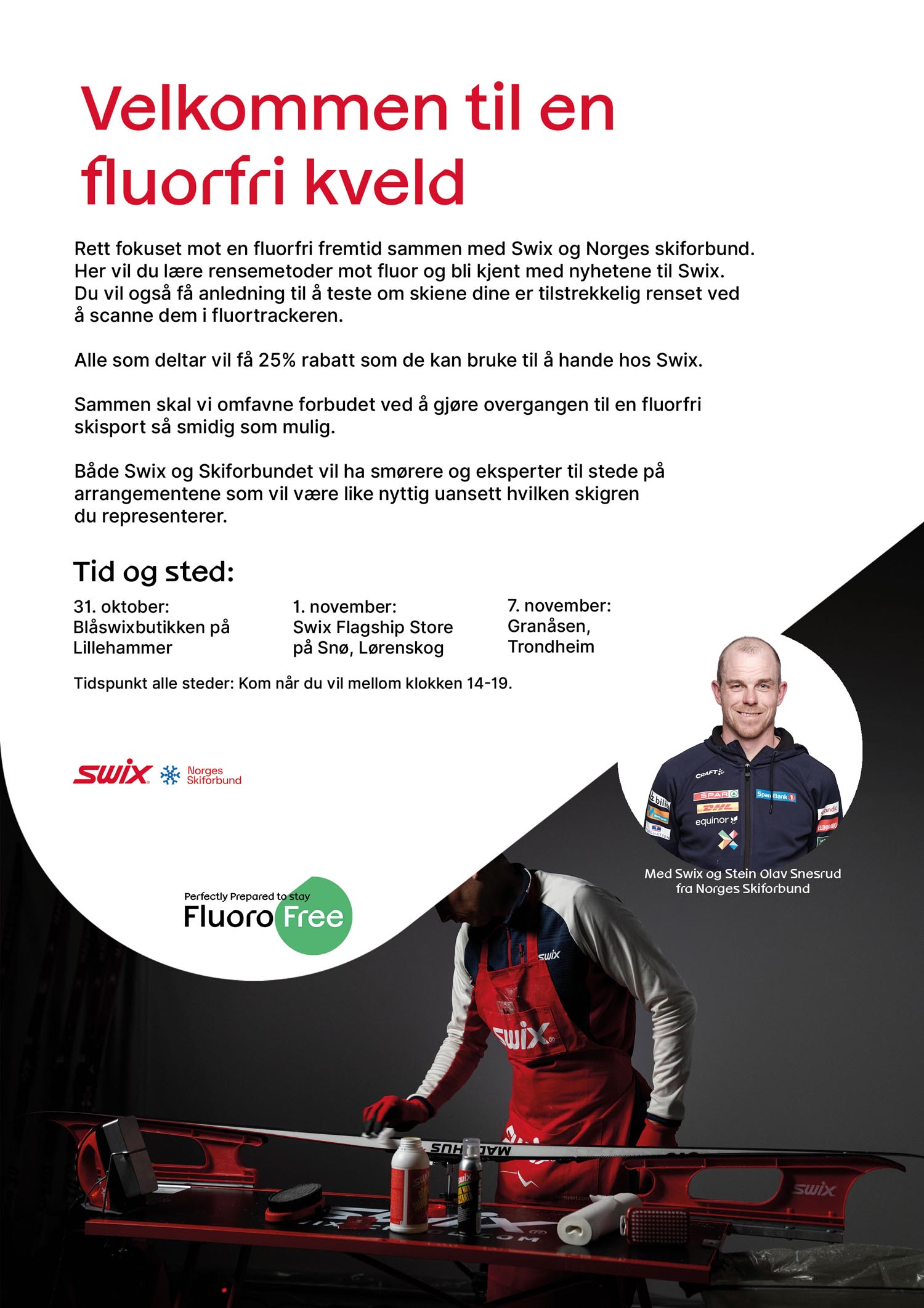 Bli fluorfri på ski i Lillehammer 31. oktober, Oslo 1. november og Trondheim 7. november.