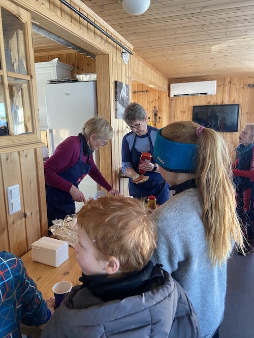 Servering av grøt og pølser er det Sør-Fron og Harpefoss sanitetsforening og Barnhaug sanitetsforening som står for. Damene som var til stede denne tirsdagen skryter av ungene og sier at dette er en veldig meningsfull oppgave. Klubbene tok kontakt med foreningen som gladelig stiller opp.