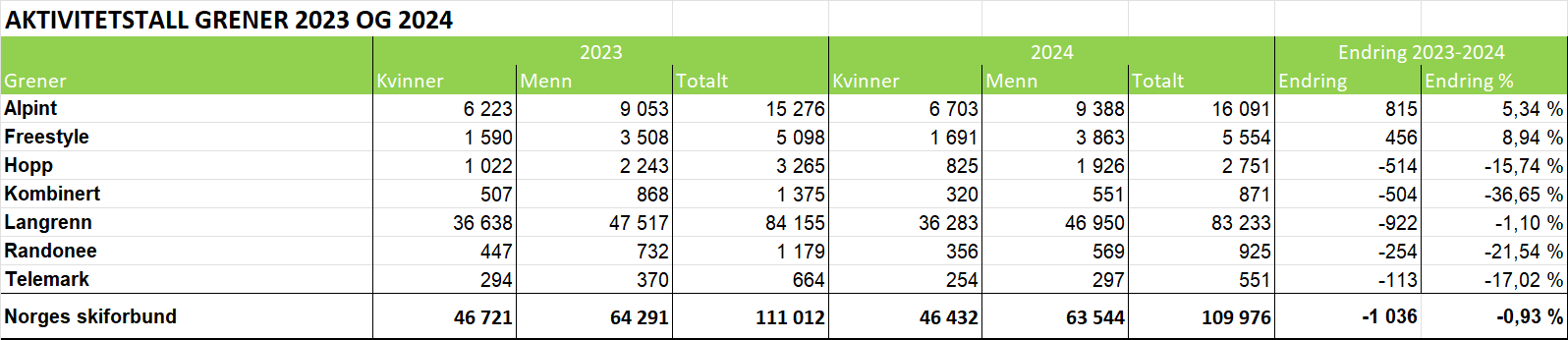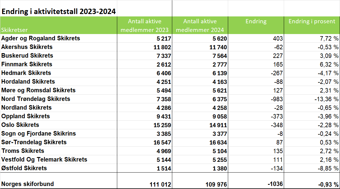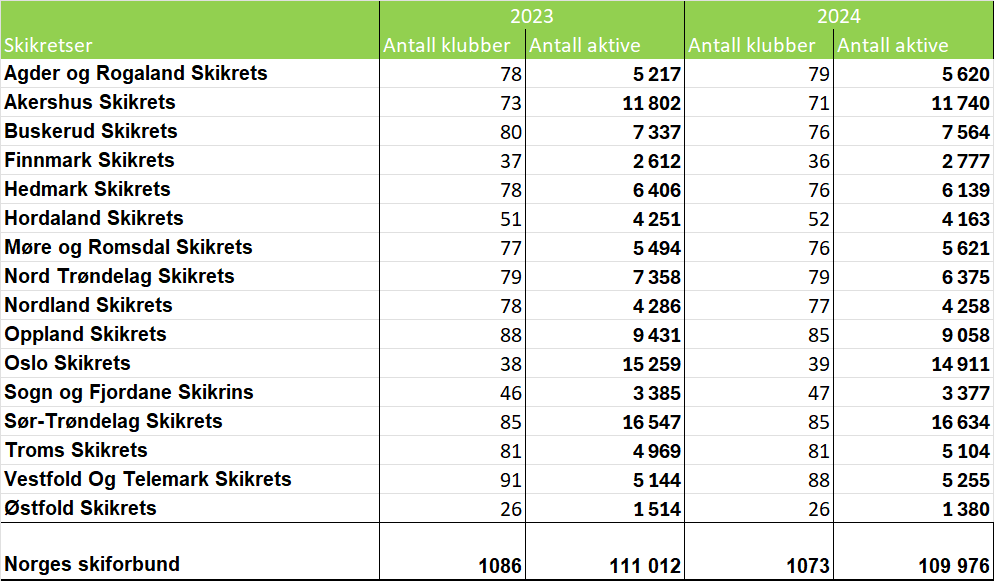 Mens flere av skikretsene og grenene har fremgang, har noen gått ned.