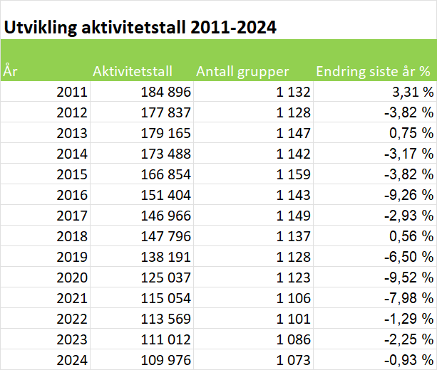 Forbundet registrerer at medlemsfrafallet har flatet ut de siste årene. Nedgangen er på 0,93 prosent fra 2023 til 2024, og dette er den minste siden 2018.