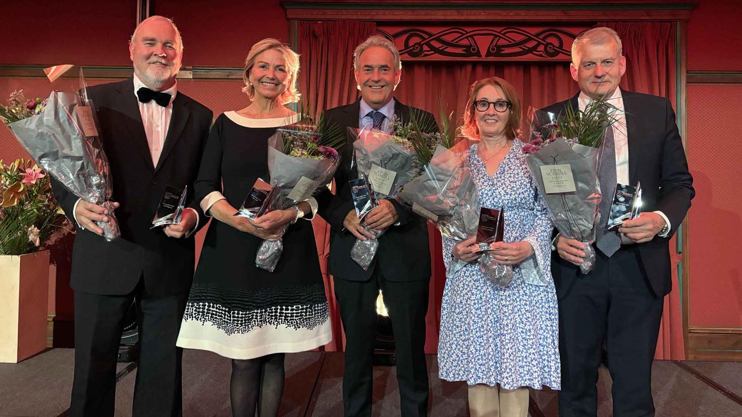 Fem nye æresmedlemmer: Roar Bogerud, (f.v) Berit Kjøll, Per Rune Eknes, Vibecke Sørensen og Erik Røste ble i helga tildelt æresmedlemskap. Foto: Carolyn Hannigan / Norges idrettsforbund