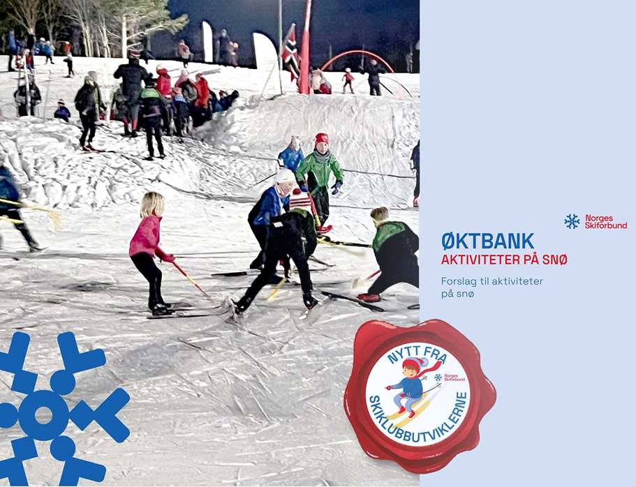 I heftet Øktbank - Aktiviteter på snø finner du nesten 100 ulike beskrivelser av aktiviteter med høy «gøyfaktor». Målgruppen er trenere for barn og ungdom.