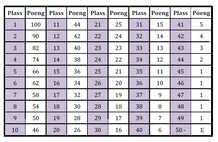 Resultater og sammenlagtplasseringer vil bli å finne på facebook siden til 13/14 årsgruppen, dere finner link her: Oslo Skikrets 13/14-åringer sesongen 2025-2026 | Facebook. Det er løperens fem beste resultater som teller sammenlagt, strykninger skjer automatisk i appen. Det er naturligvis fullt mulig å delta på flere enn fem renn.