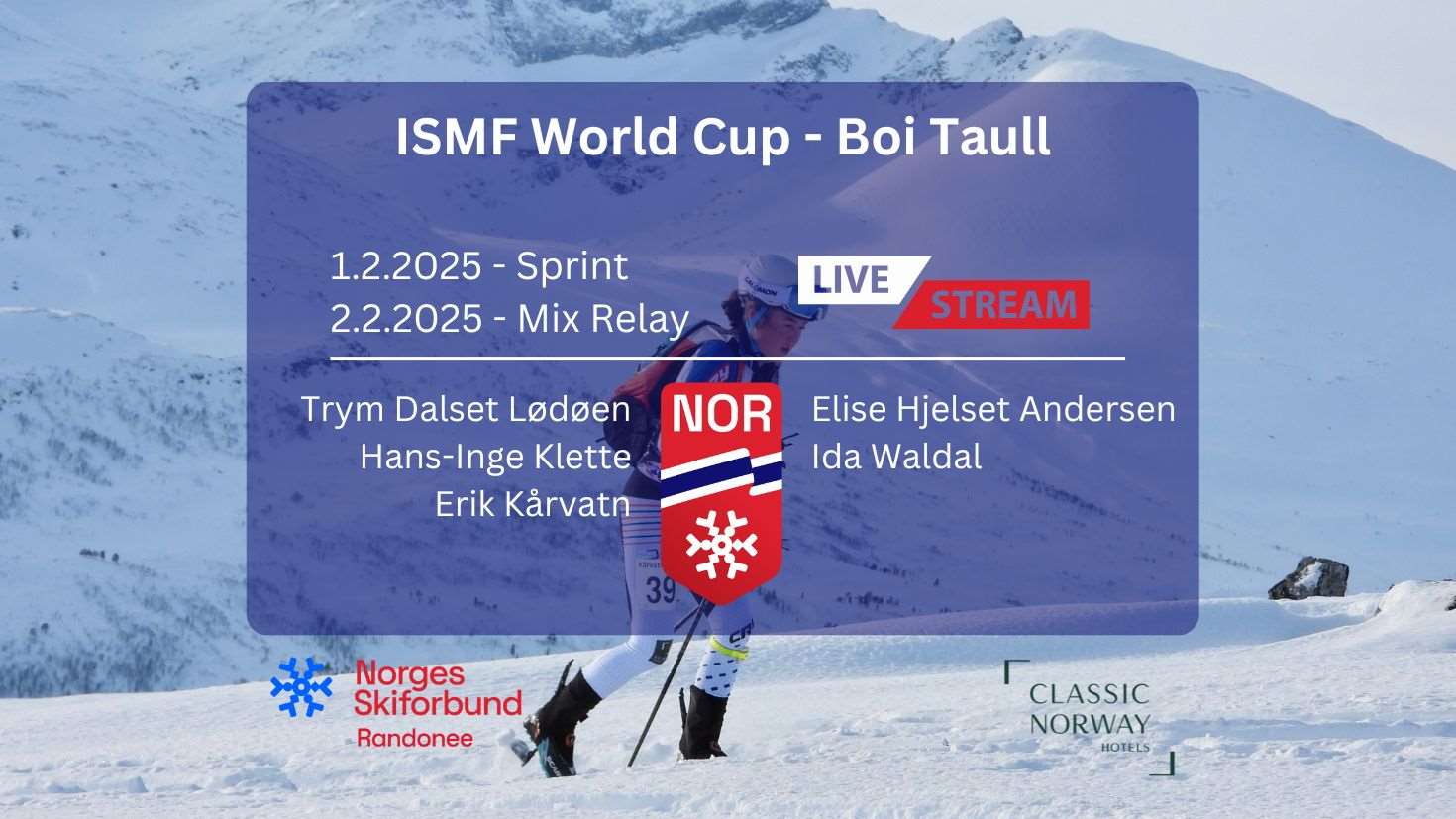 Etter mange gode prestasjoner forrige helg i Andorra, håper Randoneelandslaget å følge opp med gode sprint- og miks-stafettprestasjoner kommende helg i Boi Taull, Spania. Rennene streames live på ISMF sin youtube-kanal. Se link under.