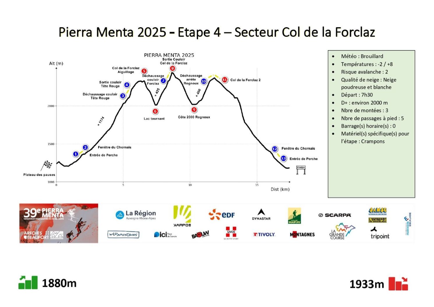 Etappe 4. Korteste etappen på 19km og 2100 hm. En lang førstestigning på over 1100hm og med mange høydemeter i beina fra før gjorde sitt til at en ikke var så sprek på denne etappen. Men med hundrevis av tilskuere på Le col de la Forclaz ble det en verdig avslutning på Pierra Menta 2025.