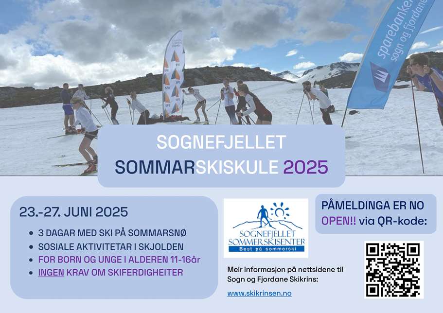 SOGN OG FJORDANE SKIKRINS ØNSKJER GLEDELEG VELKOMEN TIL SOGNEFJELLET SOMMARSKISKULE 2025.