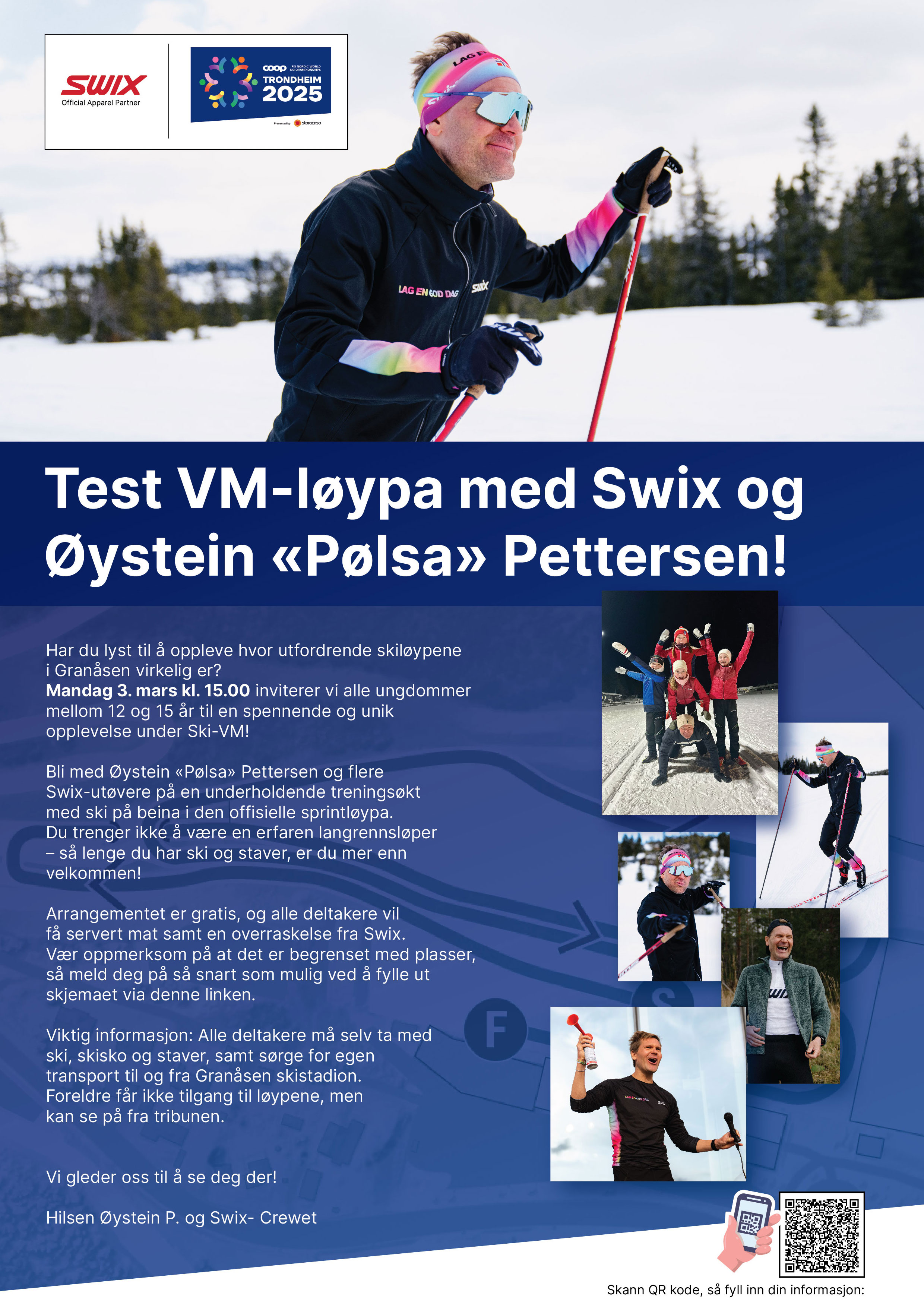 Er du mellom 12-15 år og vil teste VM-løypa sammen med Swix og Øystein? Sjekk ut dette!