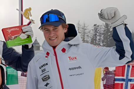 Emil i aksjon under Jr. VM i sveitsiske Mürren våren 2022. (Foto: Nils Alveberg)