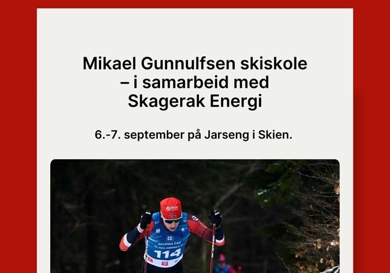 Lørdag 6. til søndag 7.september arrangerer Mikael Gunnulfsen gratis rulleskiskole i samarbeid med Skagerak Energi. Skiskolen er for deg født mellom 2010 og 2014, og er medlem i en skiklubb.